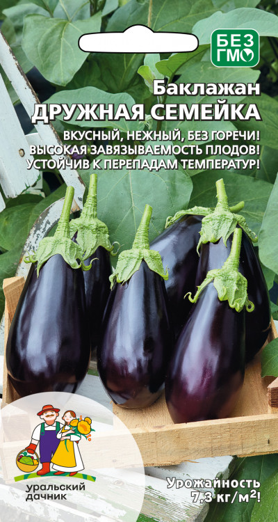 Растение низкорослое, при соблюдении агротехники достигает высоты 90-100 см. Плоды крупные, вырастают до 350-370 г, имеют цилиндрическую форму и тёмно-фиолетовый окрас. Мякоть – чистый снег – белая, нежная, без какого-либо намека на горечь.