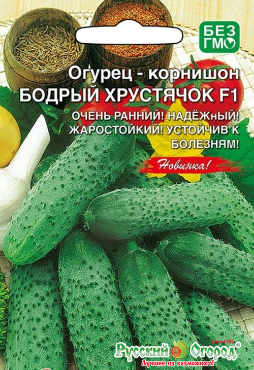 Надёжный раннеспелый гибрид женского типа цветения для выращивания в плёночных теплицах и открытом грунте. Зеленцы зелёные, с полосами средней длины, крупнобугорчатые, белошипые, длиной 10-11 см, плотные, сладкие, хрустящие. Гибрид устойчив к мучнистой росе, пероноспорозу, фузариозу и высоким температурам.
